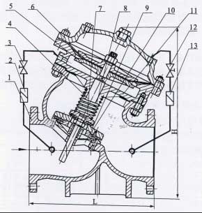 產(chǎn)品采取雙室驅(qū)動裝置、Y型結(jié)構(gòu)。介質(zhì)在定向運動中具有半直線水流,過流量大、壓力損失小、啟閉運行平穩(wěn)、不產(chǎn)生壓力波動等優(yōu)點。雙室驅(qū)動裝置可作為一個整體拆卸,便于檢查;膜片采用尼龍強化橡膠制成,使用壽命長;閥瓣密封件可拆卸,維修更方便。
